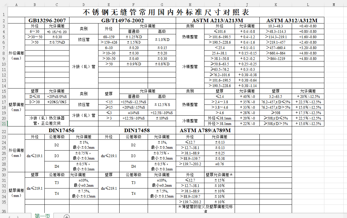 不銹鋼無縫管的常用國內外標準尺寸!用以下一張表格就說明的全部的問題!